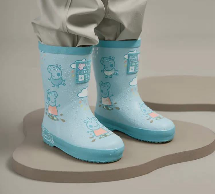 Blue colour changing wellies with Peppa pig design